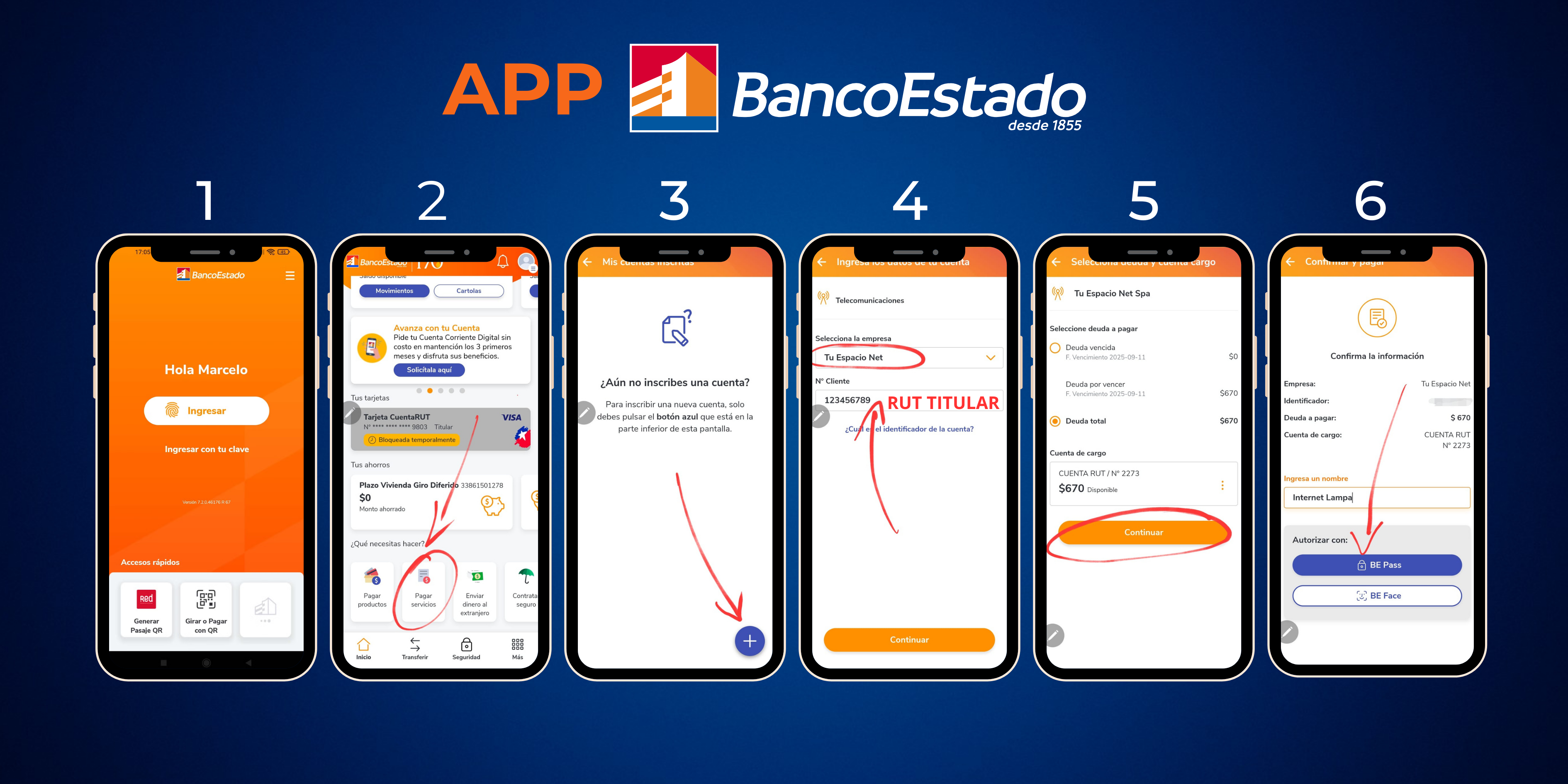 Búscanos como "Tu Espacio NET" en la sección de Pago de Servicios. Tu N° de cliente es tu RUT.