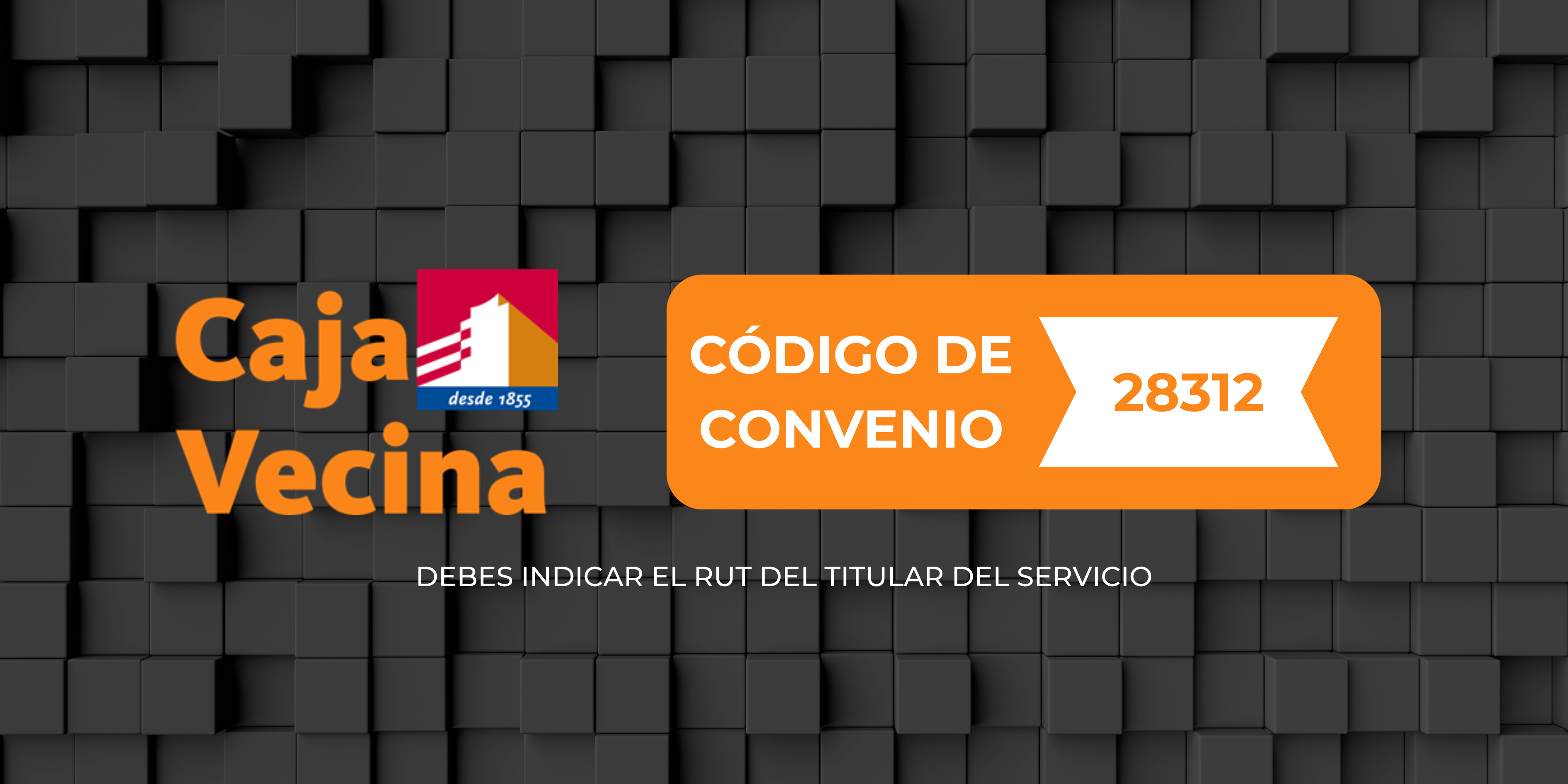 Indica nuestro Código de Convenio: 28312 junto al RUT del titular.